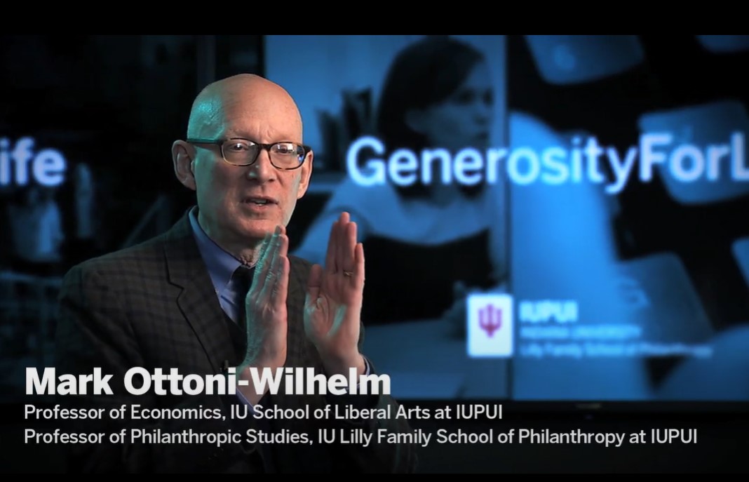 The video below presents an overview of the IU Lilly Family School of Philanthropy at IUPUI’s “GenerosityForLife” project, featuring Una Osili, PhD, Associate Dean for Research and International Programs at the IU Lilly Family School of Philanthropy at IUPUI and Mark Ottoni-Wilhelm, PhD, Professor of Economics, IU School of Liberal Arts—IUPUI and Professor of Philanthropic Studies, Indiana University Lilly Family School of Philanthropy at IUPUI.